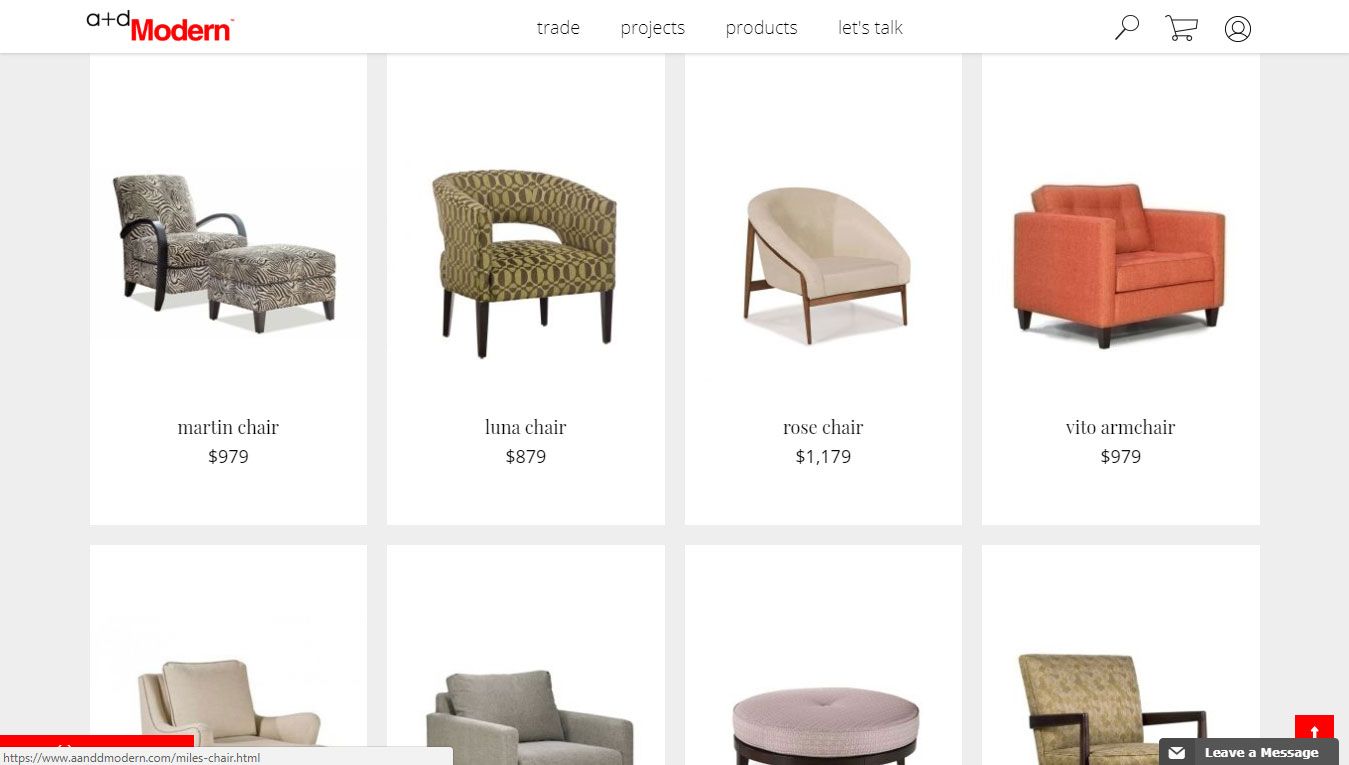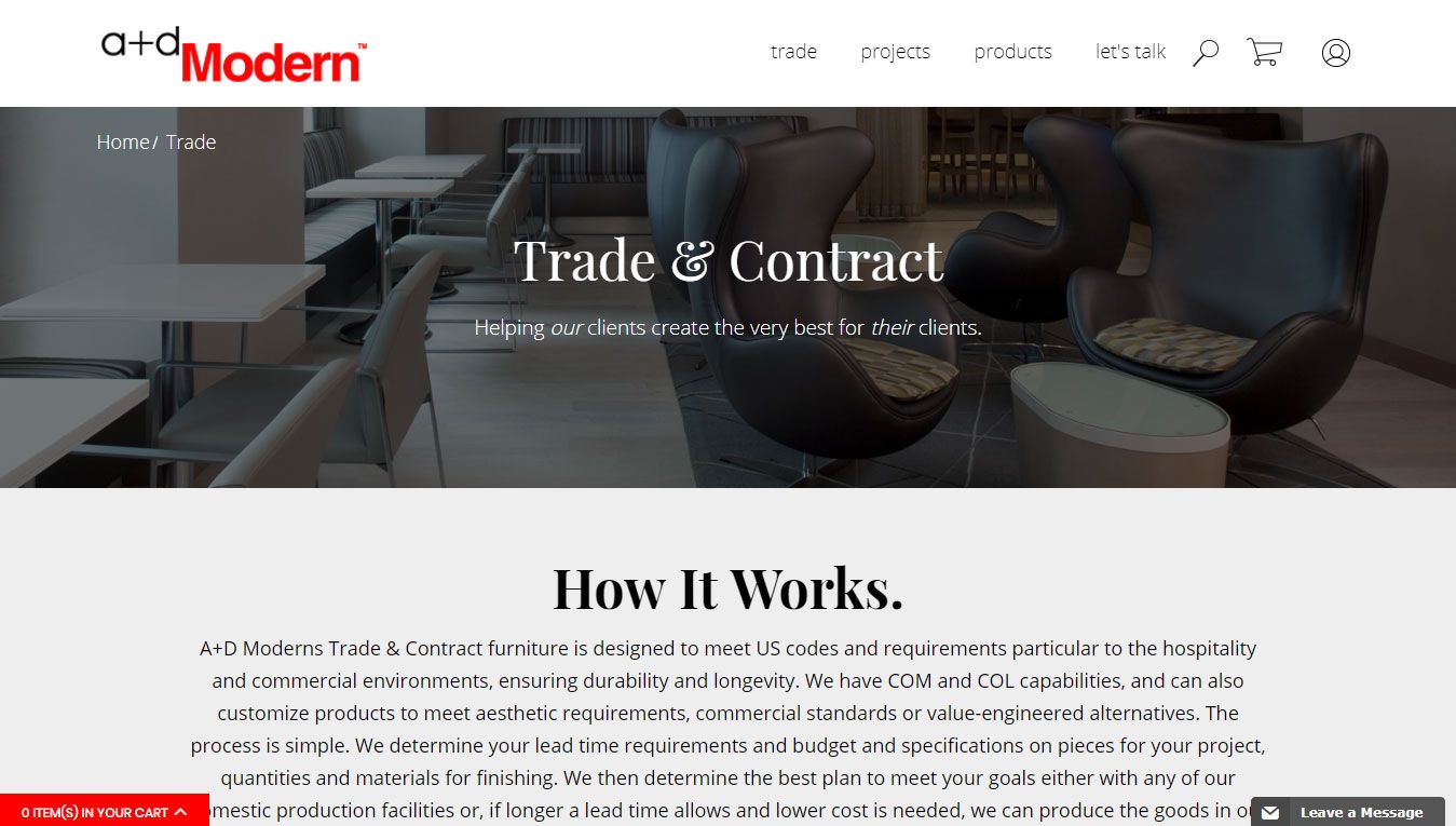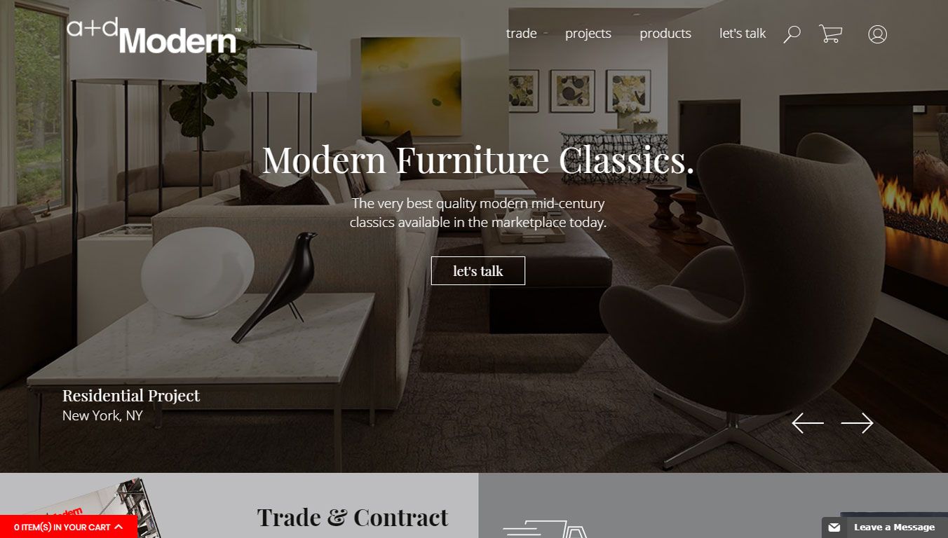 A+D Modern as the name implies, was created to provide the best in Modern Furniture for the Design and Architect Trade. We specialize in working with the trade to create Modern furniture pieces upholstered in fine fabrics and leathers.