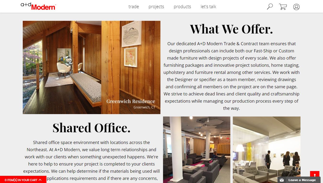 What makes A+D Modern different from other Modern Classic furniture vendors? As you may know, quality standards in the Modern Classics market can vary widely with various levels of craftsmanship, materials and attention to detail. The people behind A+D Modern are experienced Trade professionals with backgrounds in Interior Design, Furniture fabrication and Textiles. We are Industry professionals just like you and possess an eye for detail.